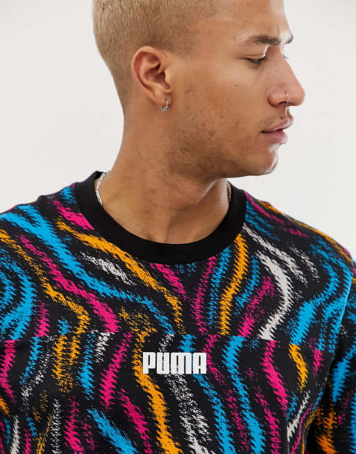 Shop Uk Puma Puma Print T Shirt Electric Blue Lemonade Peacoat Men