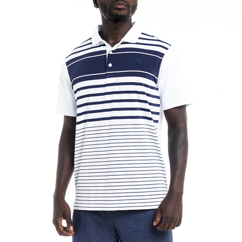 Men S Puma Spotlight White Navy Stripe Golf Polo